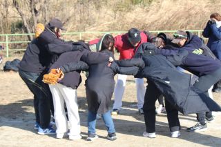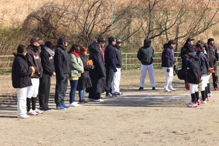 1月11日、極寒でしかも強風が荒れ狂う中、洗堰グランドにて、6年生の引退式と